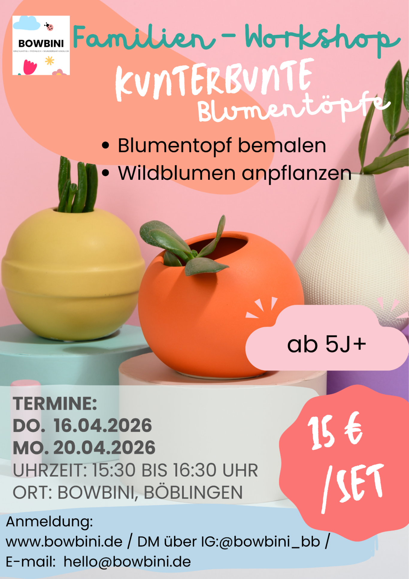 Sichert euch jetzt einen Platz und erlebt gemeinsam einen kreativen und fröhlichen Workshop-Nachmittag bei BOWBINI.