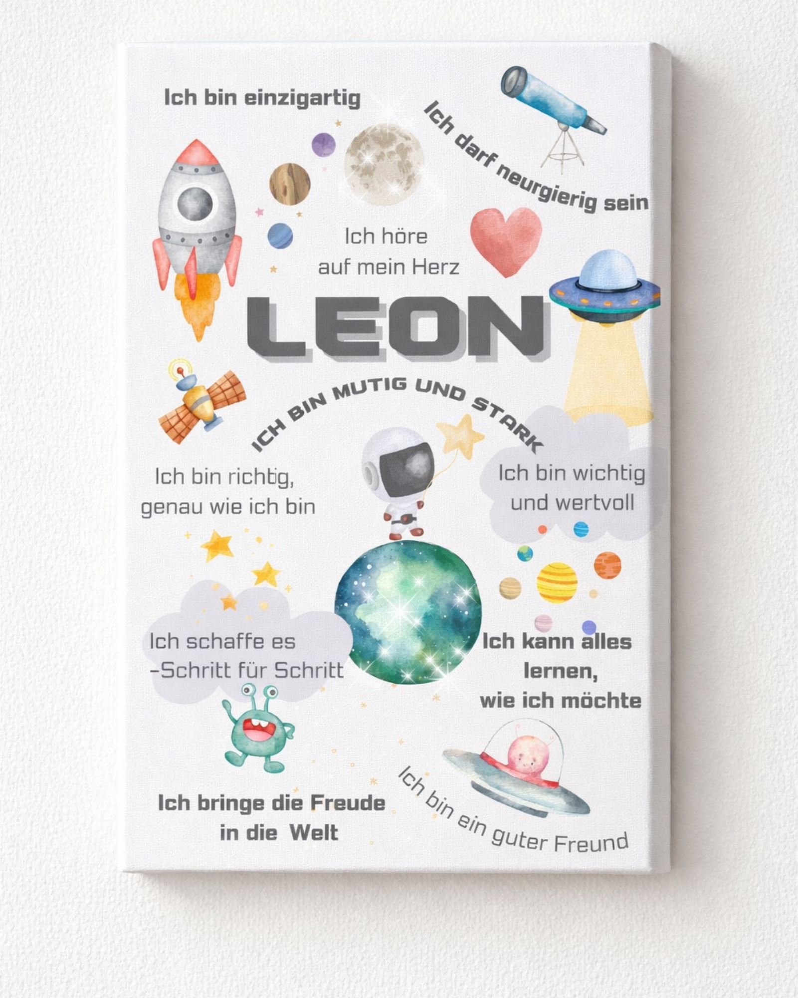 Personalisierbare Affirmations-Leinwand für Kinder mit Namen und Wunschtext